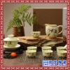茶是回归清凈的良方。一份茶香、一份闲情,三五好友、或个人独处,泡茶品茗、随意又自在。要泡一壸香醇甘味的好茶,重要的就是冲泡过程和杯壸。好的陶瓷茶具批发组合搭配爱的茗茶,可使身心同时获得解放。也是人生一大享受那么如何选择一套好的陶瓷茶具批发.茶壶:壶的式样很多,有小如桔子,大似蜜柑者,也有瓜形,柿形,菱形,鼓形,梅花形......一般多有鼓形的,取其端正浑厚故也.第二:茶杯,茶杯的选择也有四字诀:小,浅,薄,白。小则一啜而尽;浅则水不留底;色白如玉用以衬托茶的颜色;质薄如纸以使其能以起香,江西景德镇出品的陶瓷茶具批发青花白瓷小杯,也是很好的,俗称为"白果杯"。第三:茶洗形如大碗,深浅色样很多,烹功夫茶必备三个,一正二副,正洗用以浸茶杯,副洗用以浸冲罐,一个用以盛洗杯的水和已泡过的茶叶.第四:陶瓷茶具批发中的茶盘是用来盛茶杯的,也有各种款式,圆月形,棋盘形......但不管什么式样,最重要也是四字诀:宽,平,浅,白。就是盘面要宽,以便就客人人数多寡,可以放多几个杯;盘底要平,才不会使茶杯不稳,易于摇晃;边要浅,色要白,这都是为了衬托茶杯,茶壶,使之美观